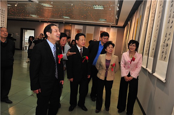 本次展覽共展出書法、美術和攝影作品等60余件。這些作品都是婁底盟員利用業余時間創作的,是盟員向民盟婁底市委成立10周年獻上的一份厚禮。在這些作品的創作者中,有數十年來廢寢忘食、甘守寂寞、潛心鉆研的老藝術家,也有向往藝海、初識毫墨的業余愛好者。他們以飽滿的政治熱情和政治責任感,在丹青方寸之間,謳歌了中國共產黨領導的多黨合作事業,抒發了婁底盟員熱愛祖國、熱愛民盟的真摯情感,展示了婁底盟員健康、高昂的精神面貌和高雅的文化風采。中共婁底市委統戰部常務副部長李友元,民盟婁底市委副主委羊小慶、朱宏志等領導,參展作品的作者及出席民盟婁底市第三次代表大會的100多位代表出席展覽會開幕式,并參觀展覽。 (婁盟王紅貴)