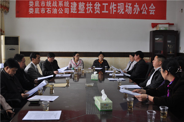 4月12號,中共婁底市委常委、統戰部長肖新桃,婁底市政協副主席、民盟婁底市委主委邵瑛帶領婁底市統戰系統、市水利局、石油公司等單位負責人,到婁星區杉山鎮木山村進行建整扶貧工作現場辦公。