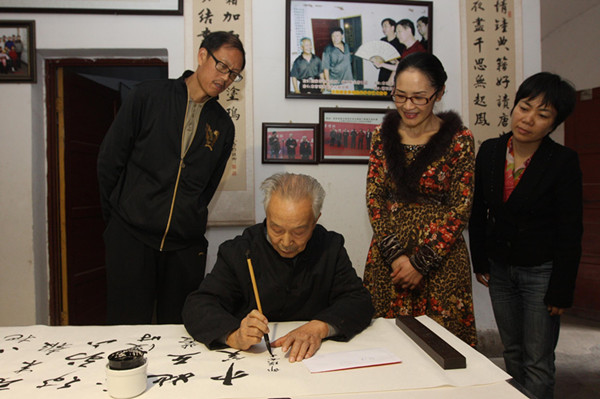 1月1日元旦新年,婁底市政協副主席、民盟婁底市委主委邵瑛送鮮花慰問婁底市八十歲著名書法家聶能卿。當日,邵瑛和民盟婁底市委工作人員來到婁底市聶能卿家中慰問并祝福新年快樂。邵瑛對聶能卿日前在北京圓滿成功舉辦的“湘籍八十老人聶能卿北京書法作品展”歸來表示祝賀。囑咐聶能卿老人保重身體,創作出更多更好的精品力作,為婁底市文化強市建設和推進幸福婁底建設努力。聶能卿老人現場揮毫創作了書法作品并贈送給邵瑛女士。