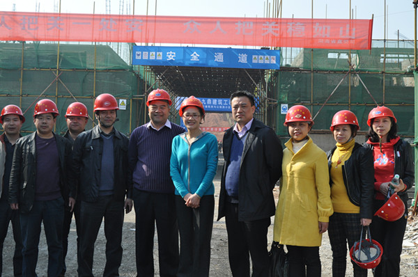 3月26日,市政協副主席、民盟婁底市委主委邵瑛(中),親切看望婁底市惠民廉租房建設工地的工程技術人員。
