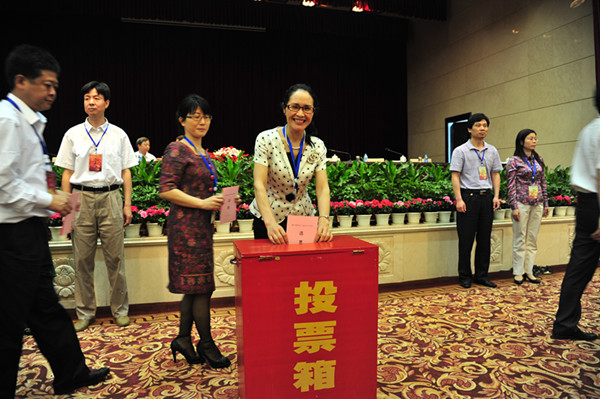 5月11日,民盟湖南省第十三次代表大會選舉第十三屆省委常委,圖為邵瑛(右1)在投票。龔文勇攝影。