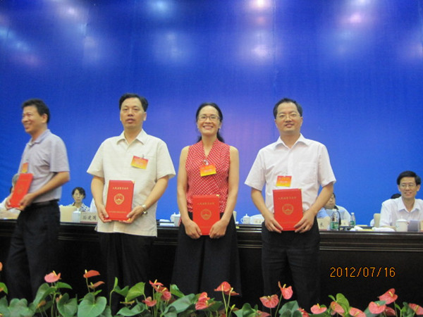 邵瑛(右2)、朱宏志(左1)、袁衛(wèi)國(右1)、李增名(左2)獲頒人民監(jiān)督員證書