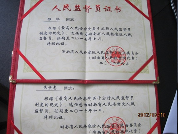 人民監(jiān)督員證書