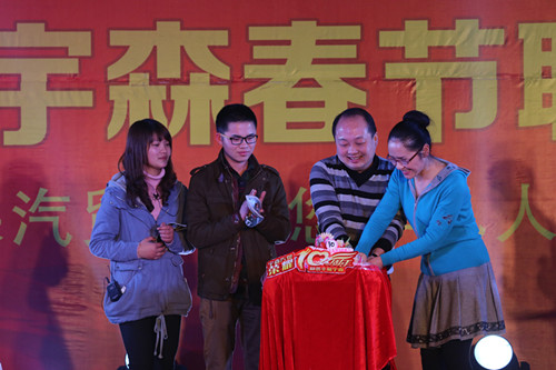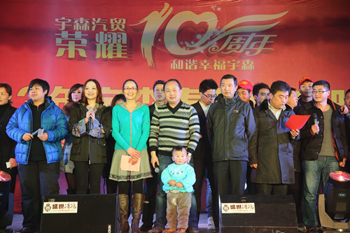 201325晚,宇森汽貿集團成立10周年暨春節聯歡晚會在婁底萬寶新區福特4S店內隆重舉行,宇森集團全體員工共300余人參加了晚會。婁底市政協副主席、民盟婁底市委主委邵瑛,民盟婁底市委副主委羊小慶出席晚會并擔任晚會節目評委。