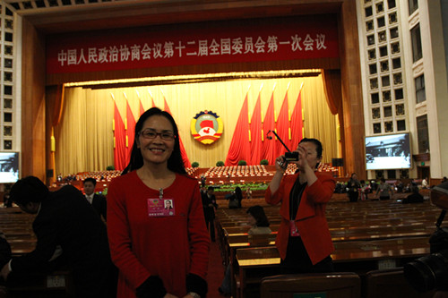 邵瑛在全國政協(xié)十二屆一次會議現(xiàn)場