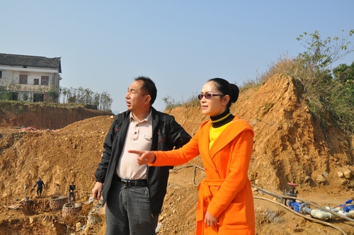 吳建平(左1)、石超剛(左2)、邵瑛(左3)等視察工地