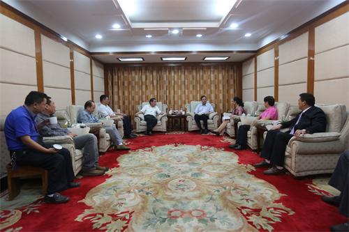 張寶文主席接見婁底盟員座談會現場。郭國權攝
