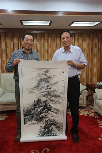 期間,婁底盟員畫家羅湘科、盟員書法家鄔小明分別向張主席敬獻了書畫作品。