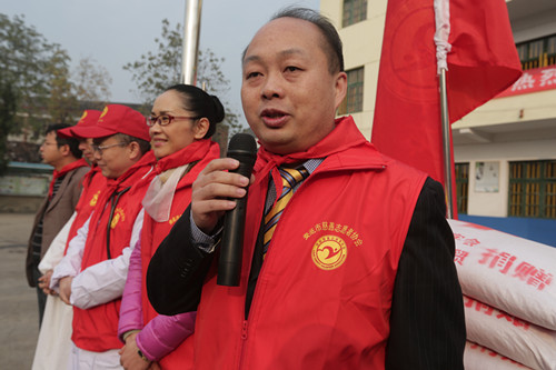 民盟婁底市經濟工作委員會副主任、婁底市慈善總會民盟分會會長、婁底宇森汽貿董事長潘杰告訴孩子們:幫助別人是很快樂的事情。宇森集團愿做這方面的表率:宇森百年、慈善百年。