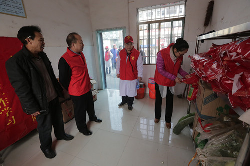 志愿者們參觀由婁底民盟和宇森捐建的食堂