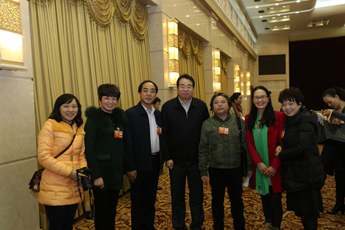 中共湖南省委常委、省委宣傳部長許又聲(中)參加省政協(xié)委員聯(lián)組討論時(shí),與邵瑛(右2)等合影。