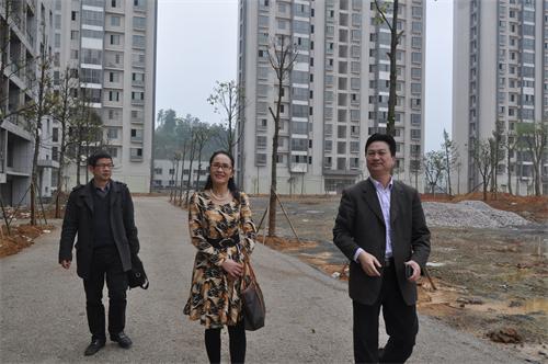 邵瑛(中)在龔洵勝(右)等陪同下參觀林業(yè)局新辦公地址