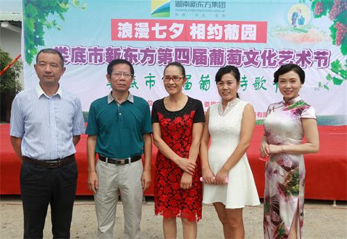 邵瑛(中)在新東方第四屆葡萄文化藝術節上與新東方董事長李佳(右2)等合影