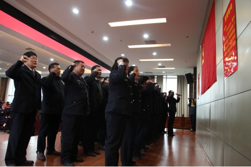 為激勵和教育干部更好地履職守責、爭先創優,3月10日上午,市城管執法局舉行了局屬事業單位科級實職干部受聘宣誓儀式。被聘用或續聘的72名干部在黨旗下整齊列隊,高舉右拳,目光炯炯,表情堅毅,高聲宣讀誓詞,鏗鏘有力的誓言在會場響起。宣誓后,局長謝萬春向這些干部頒發了聘書。