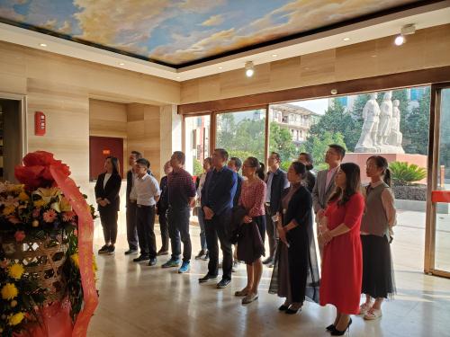 青委會(huì)一行來(lái)到蔡和森紀(jì)念館廣場(chǎng),舉行了莊嚴(yán)的悼念儀式,緬懷革命先烈,并向“蔡和森同志光輝一家”敬獻(xiàn)花籃。