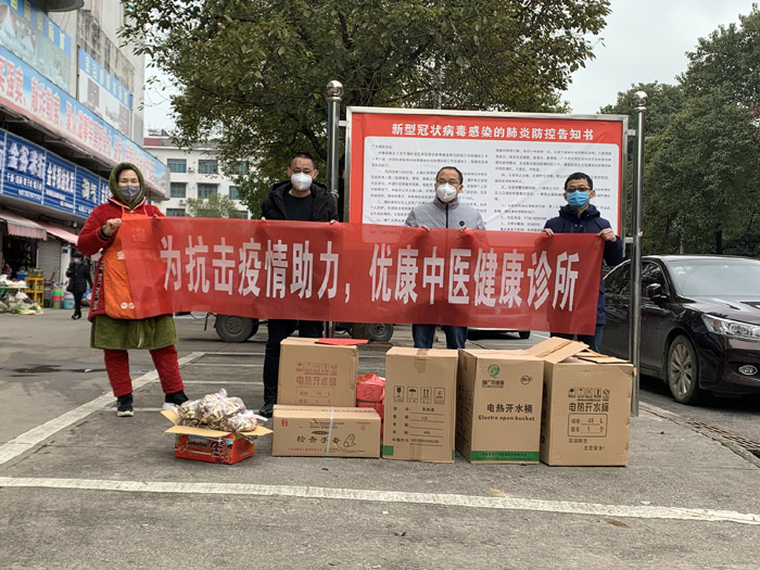 新冠肺炎期間,婁底民盟盟員,優康中醫診所的主診醫生任俊,按照湖南省衛生健康委員會發布新型冠狀病毒肺炎的中藥預防方案和中藥處方,任俊帶領他開業不到半年的優康診所,緊急采購了價值近萬元的中藥及相關器械,并親自熬制成中藥湯藥,面向社會免費提供給在一線的抗疫工作人員和社區居民,幫助他們提高免疫力。從22日起,優康診所除了在診所門口設立中藥免費飲用點,還將提高免疫力的中藥湯藥送至婁底高鐵站、火車站、高速路口、婁底市疾控中心及金谷市場等多家單位及部門,并且活動一直在持續中。除了提供免費湯藥外,優康診所結合自身專業,還推出了平安福包,包括提高免疫力的中藥,用于空氣消毒殺菌的優質艾條和醫用酒精進行銷售,獲得社會各界一致贊譽。
