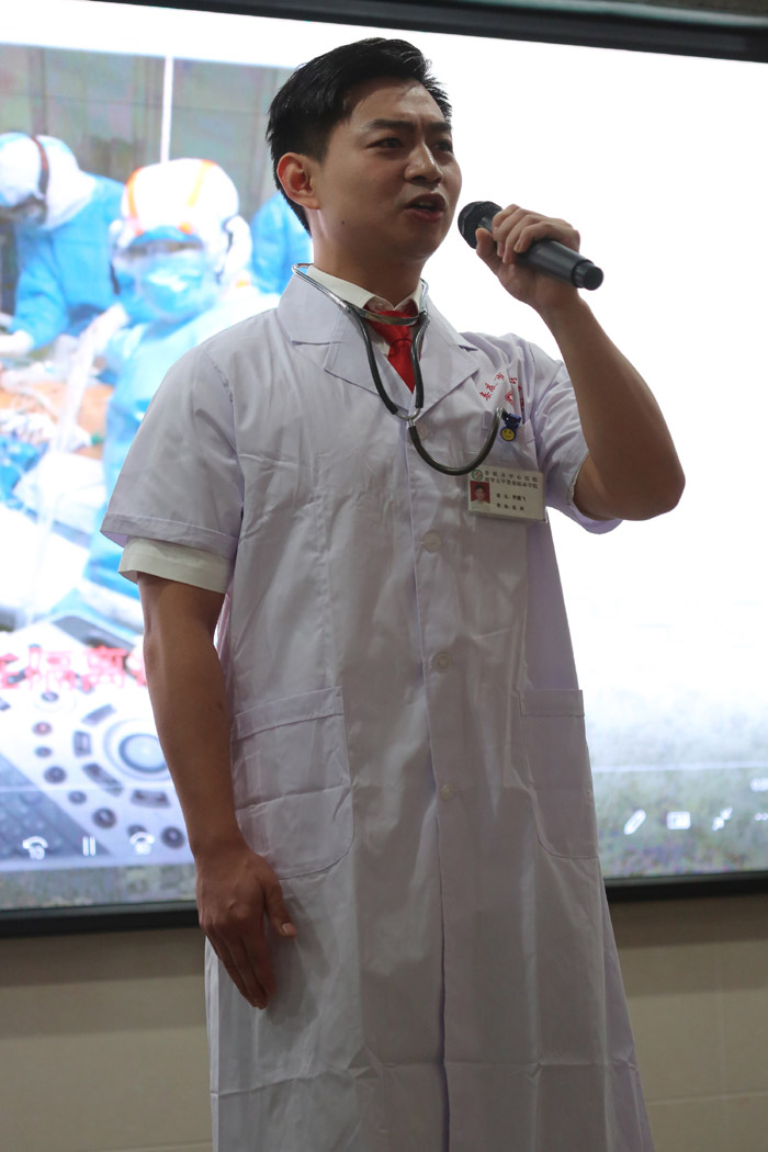 經過評委現場評分,婁底市中心醫院支部李騰飛宣講的《生命的守候》、