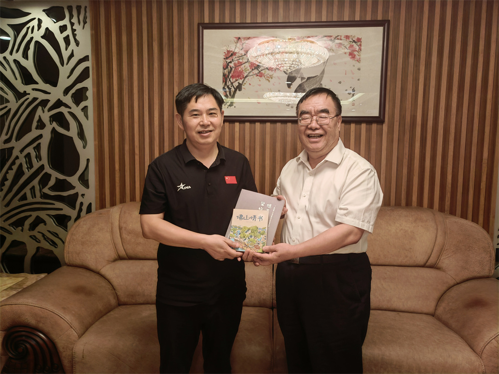 在民盟佛山市委會機關,趙新文向傅小松贈送了佛山民盟機關編輯的《攜手團結奮進 堅守合作初心》等書刊,雙方就民盟組織建設、參政議政、機關建設等方面工作進行了深入交流。