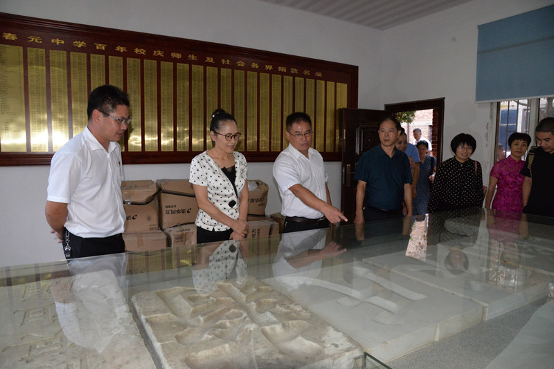 座談會后,春元中學(xué)校長唐啟明等陪同邵瑛一行,參觀了春元中學(xué)校史陳列館等校園設(shè)施。