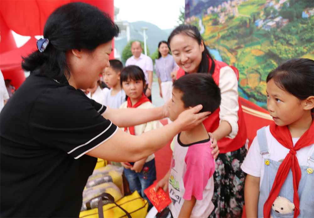 伍美華為孩子們贈送物資