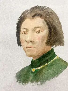 教師在教學活動中帶領學生了解蔡和森同志的英勇事跡,展示蔡和森同志及友人僅存不多的照片和有關蔡和森同志的藝術作品,通過“為家鄉英烈造像”的活動,運用水彩畫的表現技法,緬懷和傳承其革命精神。(圖4)