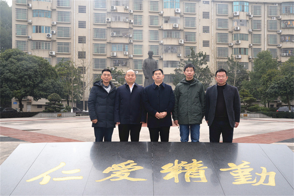 19日下午,慰問活動結束后,傅小松一行在漣源市政協副主席、民盟漣源市委會主委李海日,民盟漣源市委會專職副主委肖建強,漣源一中政教處主任、民盟漣源一中支部主委劉慧雄等陪同下,實地考察了漣源一中校園。漣源一中系國立師范學院舊址所在地,國立師范學院于1938年,由著名教育家、心理學家廖世承先生創辦。廖世承先生曾歷任民盟第二、三屆中央委員,民盟上海市委員會第四、五、六屆副主任委員。民盟先賢儲安平、皮名舉、雷敢、徐燕謀等也曾任教國立師范學院。儲安平是江蘇宜興人,先后加入民盟與九三,是著名的民主人士。曾任民盟中央機關報《光明日報》總編。1940年至1944年,應廖世承之邀來到藍田,任教國立師范學院,擔任公民訓育系教授。皮名舉是長沙人,美國哈佛大學博士,專攻世界史,和錢穆并稱為“錢皮”。曾出任國立師范學院教授、史地系主任、教務長、代理院長。雷敢是瀏陽人,留學日本早稻田大學,早年與毛澤東友善,是我國較早的馬克思主義者之一,歷任民國大學、湖南大學、國立師范學院教授,著有《中國史綱》《中國古代中世紀史》等學術著作。徐燕謀,江蘇昆山人,1929年上海光華大學畢業,1952年加入中國民主同盟。曾任復旦大學英語語言文學教授。他是錢鐘書的摯友,錢鐘書對其詩才推崇備至,1939年他隨錢鐘書來國立師范學院任英文系講師。傅小松一行對廖世承先生等民盟先輩深耕教育的高尚情操由衷敬佩,對蘊藏于漣源一中的民盟傳統教育資源如獲至寶。