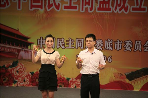 大會(huì)還舉行了精彩紛呈的“同心同行·紀(jì)念中國(guó)民盟成立70周年”文藝演出。參加演出的12個(gè)節(jié)目都是婁底盟員利用業(yè)余時(shí)間編排創(chuàng)作的,表達(dá)了婁底盟員對(duì)中國(guó)共產(chǎn)黨、對(duì)中國(guó)民主同盟的無限熱愛,充分展示了婁底盟員積極向上的精神面貌。精彩的演出贏得了觀眾的陣陣掌聲。