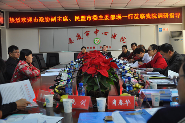 12月11日,婁底市政協(xié)副主席、民盟婁底市委主委邵瑛率盟婁底市委委員到婁底市中心醫(yī)院調(diào)研,受到婁底市政協(xié)副主席、民盟婁底市委副主委、婁底市中心醫(yī)院院長肖揚,婁底市中心醫(yī)院黨委書記李勁松等的熱烈歡迎。