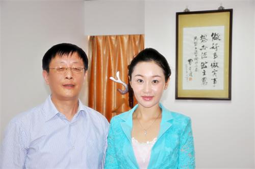 顧大豐(左)親切接見胡瓊妮(右)并合影留念