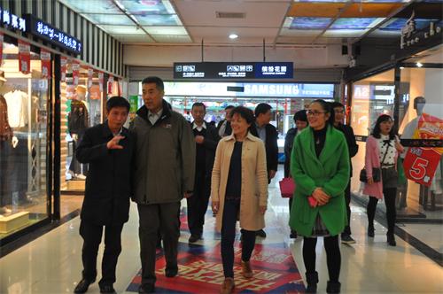 張冠生(前排左2)在湯濁(前排右2)邵瑛(前排右1)陪同下視察婁底長青商業(yè)街