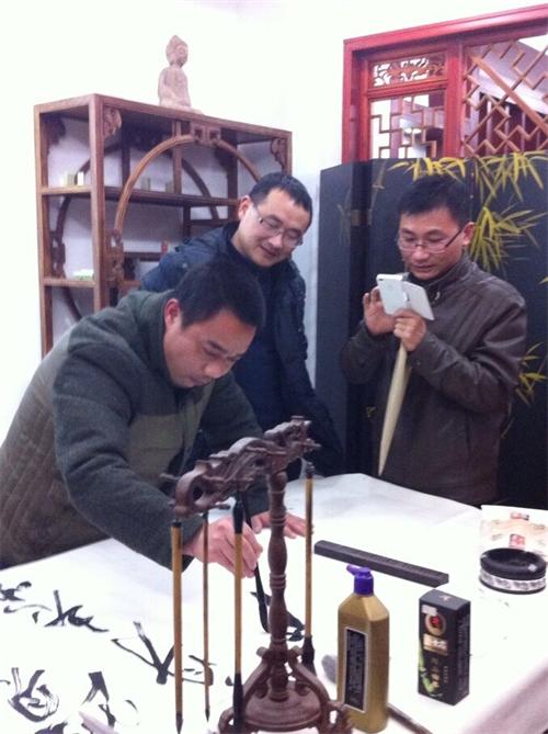 “第一刀”,賀永林是湖南省美協(xié)會(huì)員,在劉翼軍的工作室里,兩位盟員書(shū)
