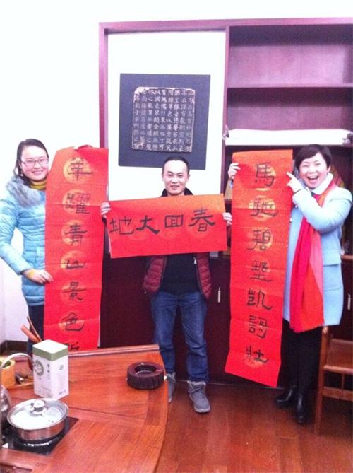 畫(huà)藝術(shù)家鋪墨揮毫,筆落處春聯(lián)出,紙起時(shí)祝福到,盟友們都得了墨寶,喜