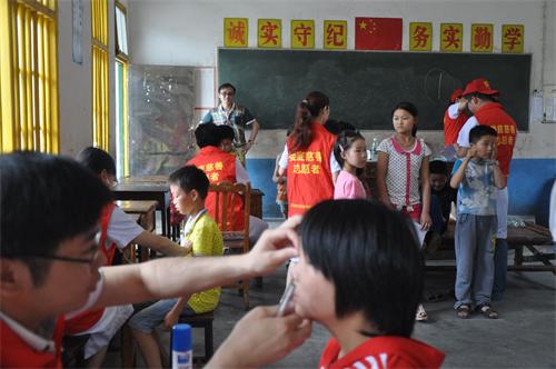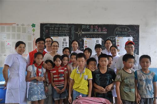 民盟婁底市委委員、市中心醫院支部主委、醫院急診中心主任李文華等10多名盟員醫務工作者,遠赴漣源市斗笠山鎮惠民學校,為孩子們做一年一次的義務體檢。孩子們經過前兩次體檢后,已經比較熟悉體檢流程了,相當配合。體檢結束后,眼科專家還給孩子們講授了沙眼防治等眼科知識。