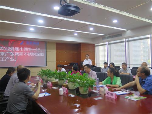 根據(jù)婁底市政協(xié)2015年民主協(xié)商工作安排,將婁底市金屬板材深加工產(chǎn)業(yè)發(fā)展內(nèi)容,作為民盟婁底市委、九三學(xué)社婁底市委聯(lián)合開展的界別協(xié)商課題,并組成了由婁底市政協(xié)副主席劉繼清、邵瑛任組長,市政協(xié)提案委、民盟婁底市委、九三學(xué)社婁底市委、市政府辦、市經(jīng)信委、相關(guān)縣市區(qū)、婁底經(jīng)開區(qū)、漣鋼規(guī)劃部等單位和部門相關(guān)負責(zé)人和專家組成的調(diào)研組,在婁底市經(jīng)信委的大力支持與配合下,調(diào)研組7月份中下旬先后到雙峰縣、漣鋼、婁底市經(jīng)開區(qū)等地調(diào)研,了解婁底市域內(nèi)金屬板材特別是不銹鋼深加工產(chǎn)業(yè)發(fā)展情況;此次專程赴廣東省佛山等地,重點調(diào)研不銹鋼產(chǎn)業(yè)發(fā)展情況。調(diào)研組先后馬不停蹄地實地參觀考察了宏旺投資集團有限公司、廣東美凌集團、廣東菱王電梯有限公司、不銹鋼大市場、金鑫祥不銹鋼制品有限公司、燁輝鋼鐵貿(mào)易有限公司、金大田門業(yè)有限公司、佛山市鑫奇電器集團、英皇電器有限公司,并與以上企業(yè)負責(zé)人座談。