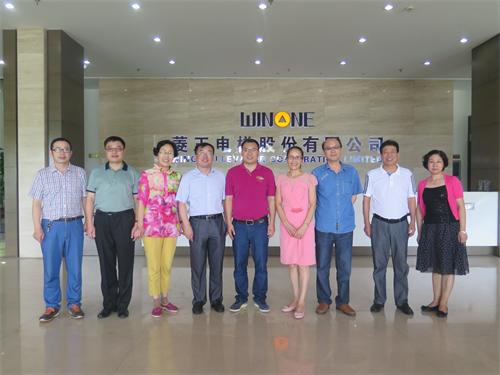 劉繼清(左4)、邵瑛(右4)一行與菱王電梯公司總經(jīng)理(中)謝建合影