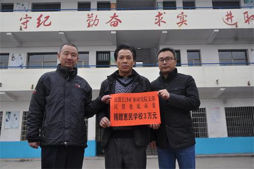 民盟婁底市委和民盟長沙礦冶研究院支部共同為惠民學校新建的青少年宮捐贈3萬元。中共長沙礦冶研究院副院長李茂林,民盟長沙礦冶研究院支部主委龔文勇等9人,對口支助9個貧困學生,給每個孩子捐助1000元學雜費和生活費。帶隊前來的長沙礦冶研究院黨群工作部部長闕鋒說,黨盟合作情系貧困學生的故事在長沙礦業(yè)研究院引起了良好的反響,今年又有3個同志主動加入了黨盟合作開展“燭光行動”。