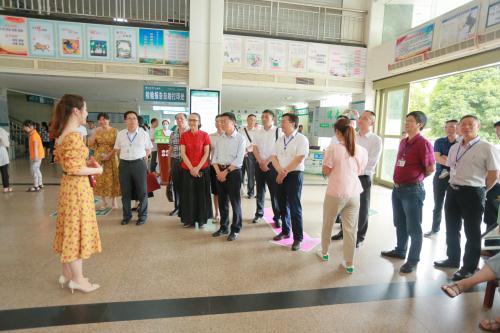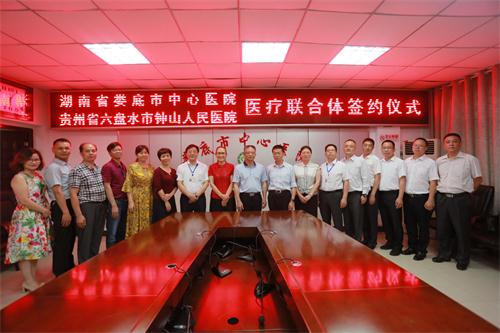 隨后,在趙應良、邵瑛陪同下,何樞一行到婁底市中心醫院考察,實地觀摩醫院6S管理、全科醫生轉崗培訓基地、臨床技能培訓中心,就如何進一步提升醫院醫療服務水平進行了交流座談,并在醫院科技樓7樓會議室,舉行了婁底市中心醫院與六盤水市鐘山人民醫院醫療聯合體簽約儀式。