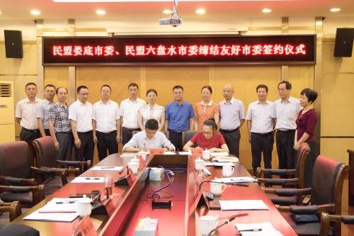 5日下午,在婁底市政協主席會議室舉行了民盟婁底市委、民盟六盤水市委盟務交流座談會,和締結友好民盟市委簽約儀式。會上,邵瑛、何樞分別介紹了各自民盟市委基本情況及工作開展情況,就盟務工作進行了探討,并分別代表民盟婁底市委和民盟六盤水市委,簽訂友好民盟市委締結協議。